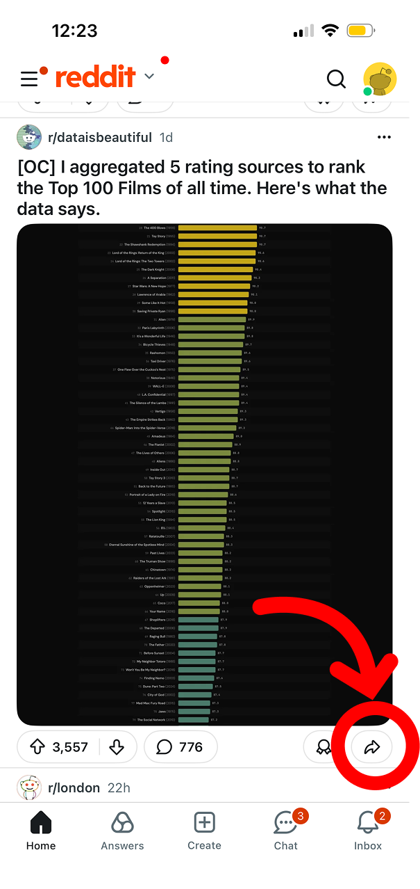Open Reddit and find the post you want to save to Albo.